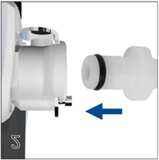 - Insert one end of the oxygen supply tubing into the oxygen connector port. The tubing will automatically lock into place.